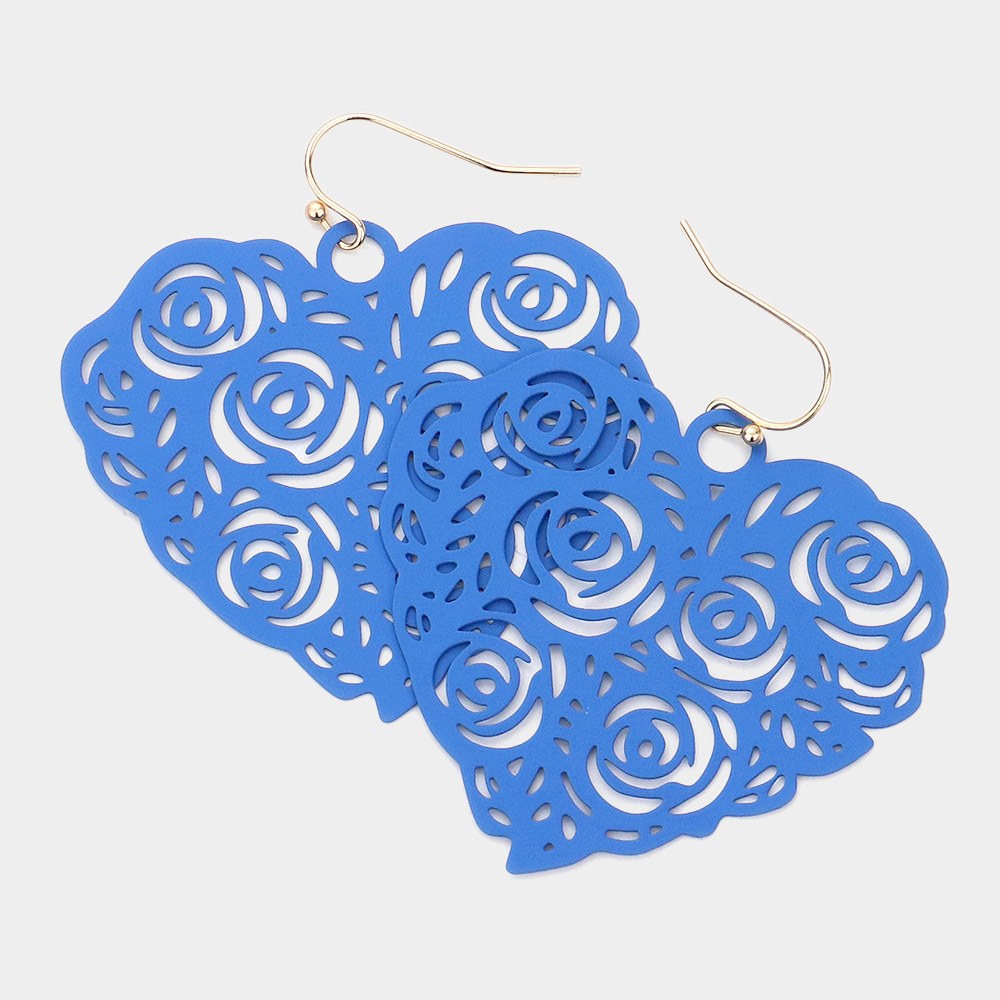 Brass Metal Cutout Floral Heart Dangle Earrings