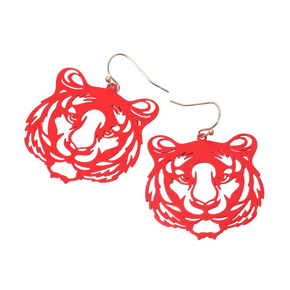 Details • Size : 1.5" X 2" • Fish Hook Back • Make a fierce fashion statement with these bold tiger face cutout earrings featuring an intricate design and lightweight style. Perfect for parties, everyday wear, or gifting, these earrings add a touch of wild elegance to any outfit. • Brass • Lead and Nickel Compliant