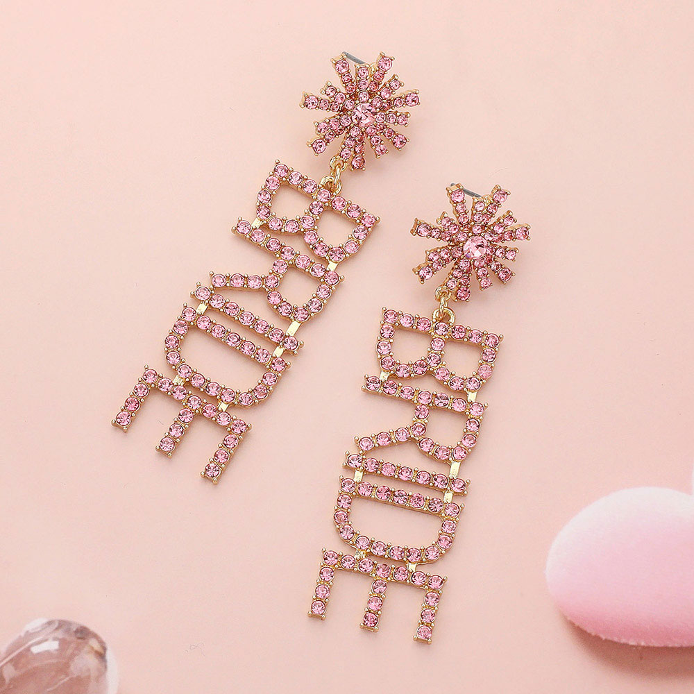 Bride Rhinestone Message Dangle Earrings