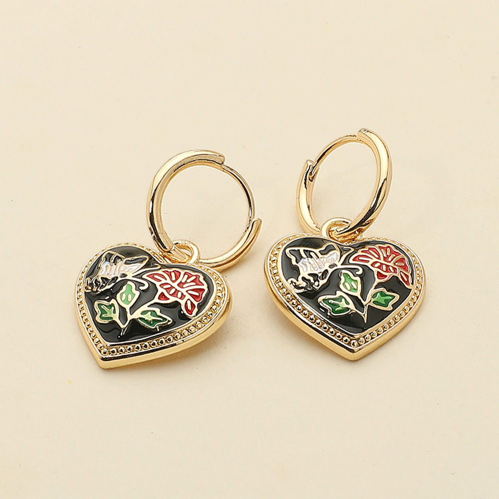 Butterfly Flower Enamel Detailed Heart Dangle Earrings Butterfly Flower Enamel Detailed Heart Dangle Earrings