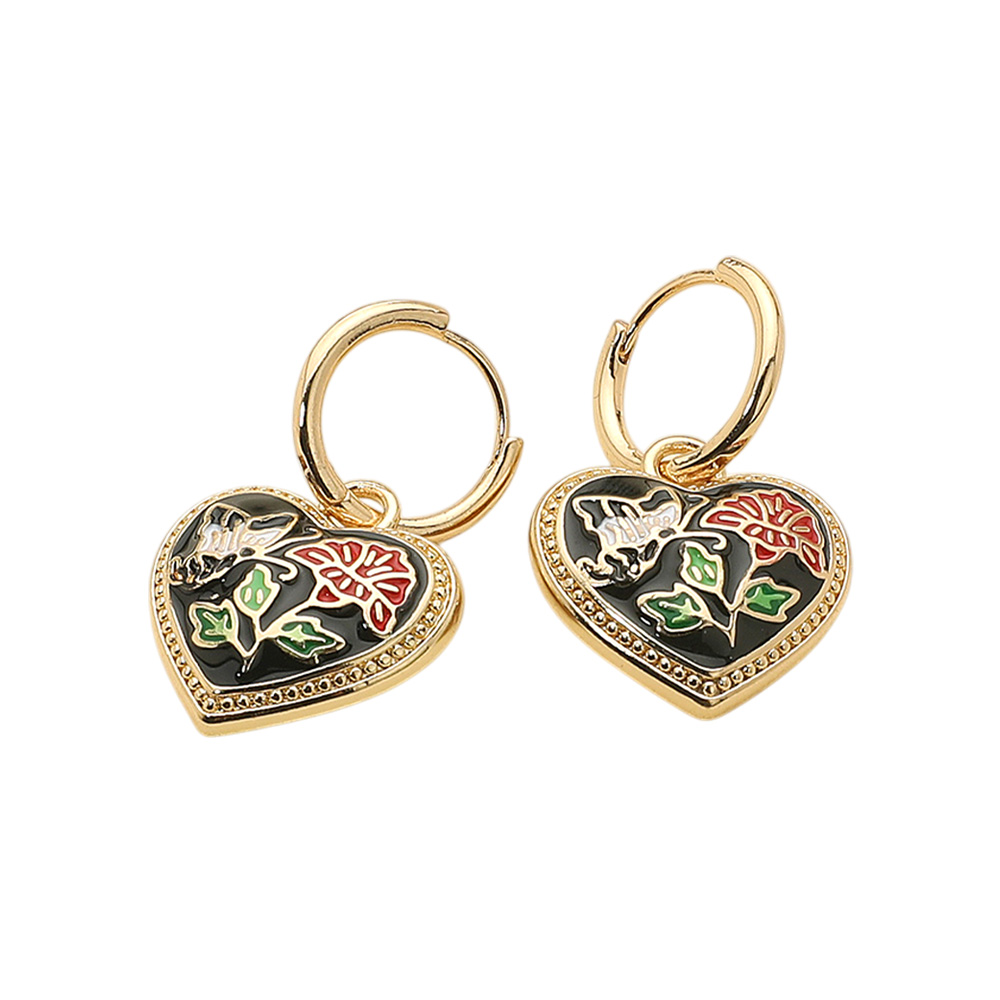 • Add charm to your style with these heart hoop earrings featuring delicate floral enamel details. Their unique design combines elegance and playfulness, making them perfect for everyday wear or special occasions. A stylish accessory and thoughtful gift choice.