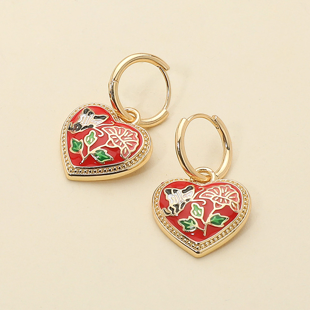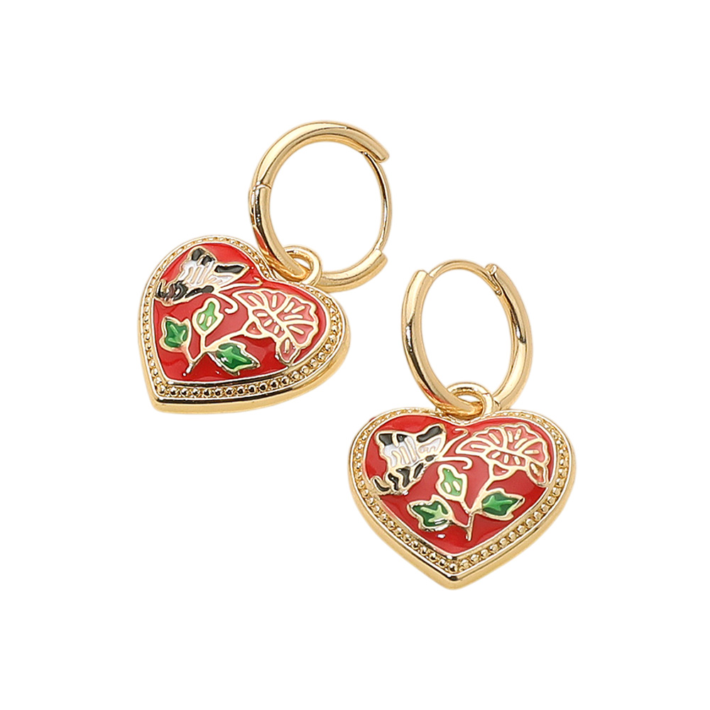 Butterfly Flower Enamel Detailed Heart Dangle Earrings Butterfly Flower Enamel Detailed Heart Dangle Earrings
