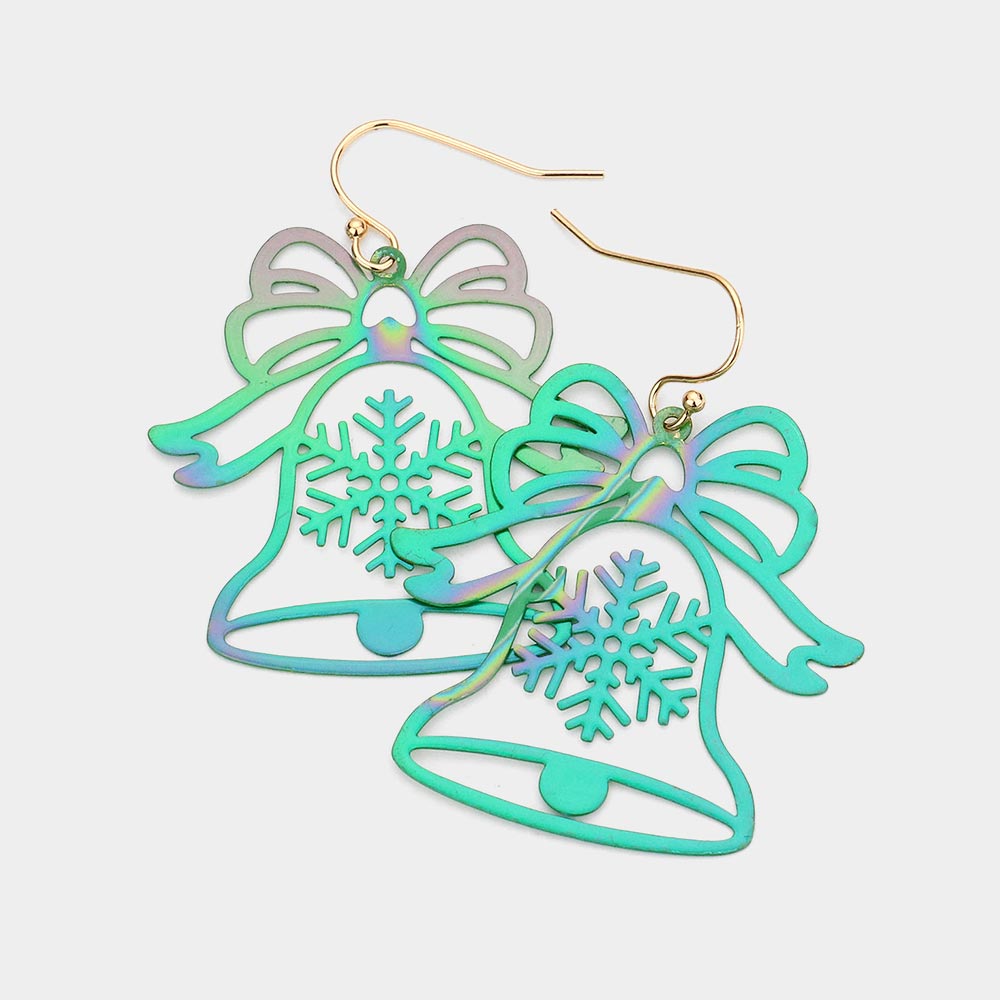 Stone Embellished Cutout Christmas Socks Brass Metal Round Dangle Earrings
