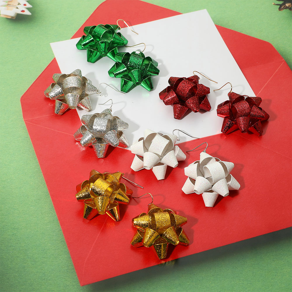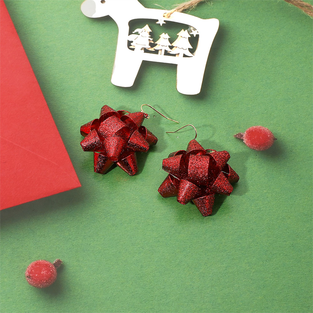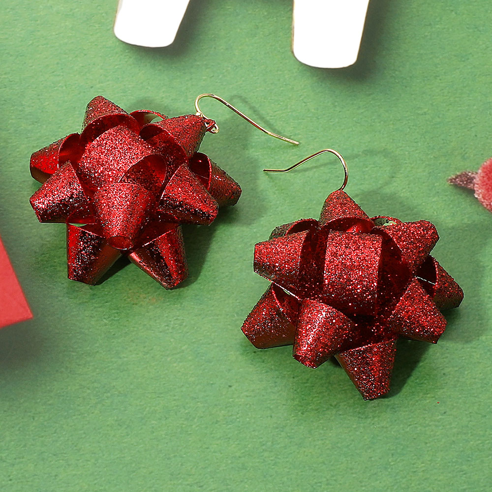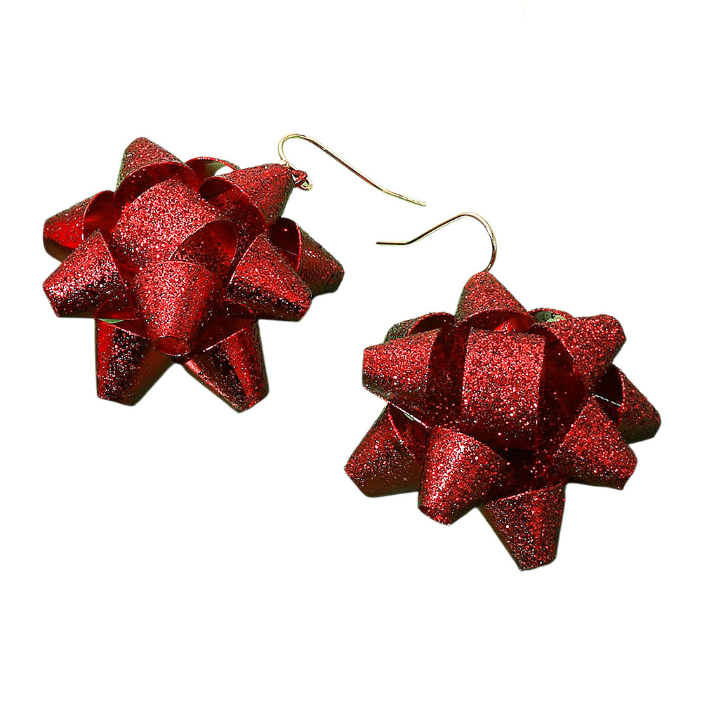 Details • Size : 1.6" X 2.25" • Fish Hook Back • Playful bow earrings designed with a festive finish that adds a touch of sparkle to seasonal looks. Lightweight and eye-catching, these statement earrings bring holiday cheer to parties, gatherings, and everyday celebrations. • Lead and Nickel Compliant
