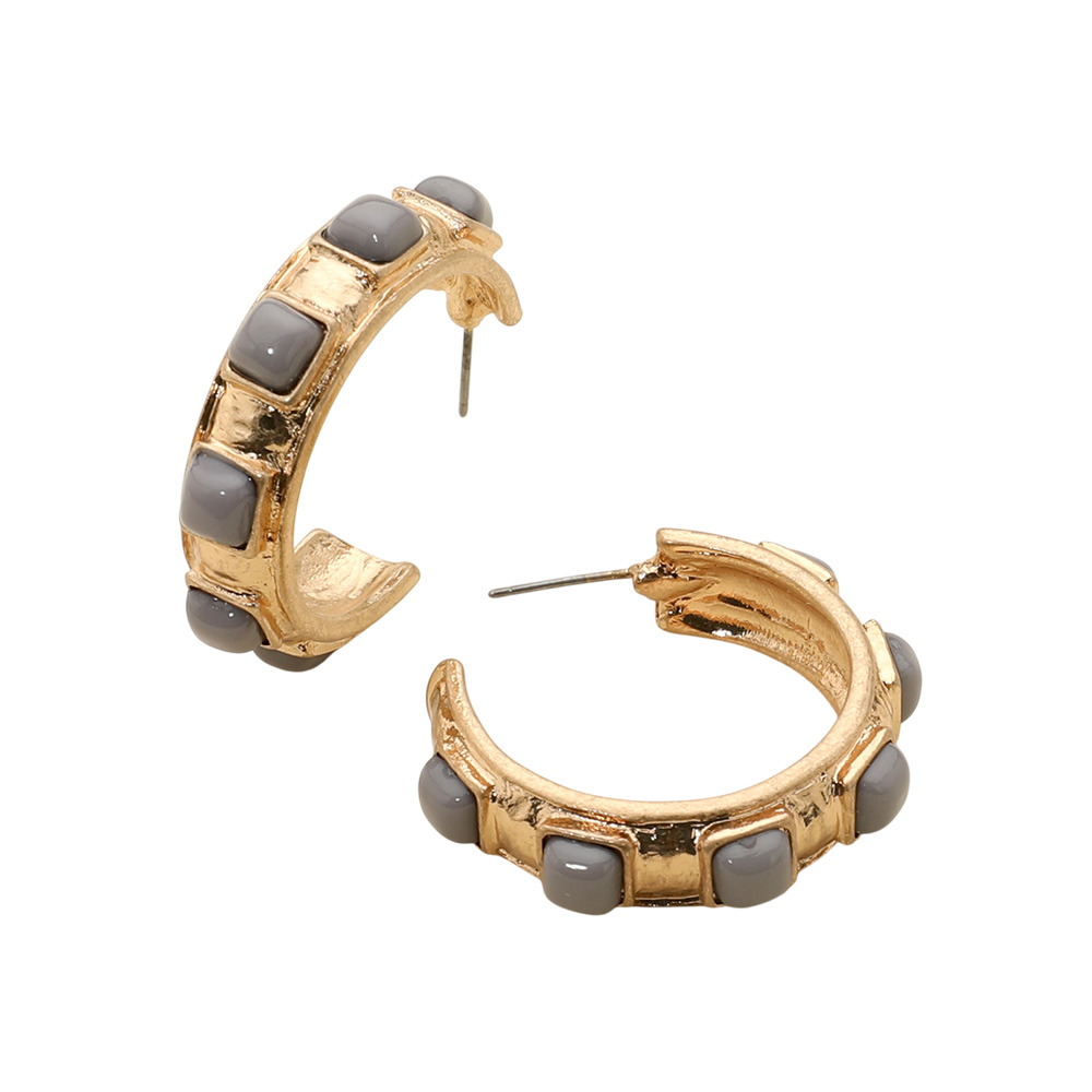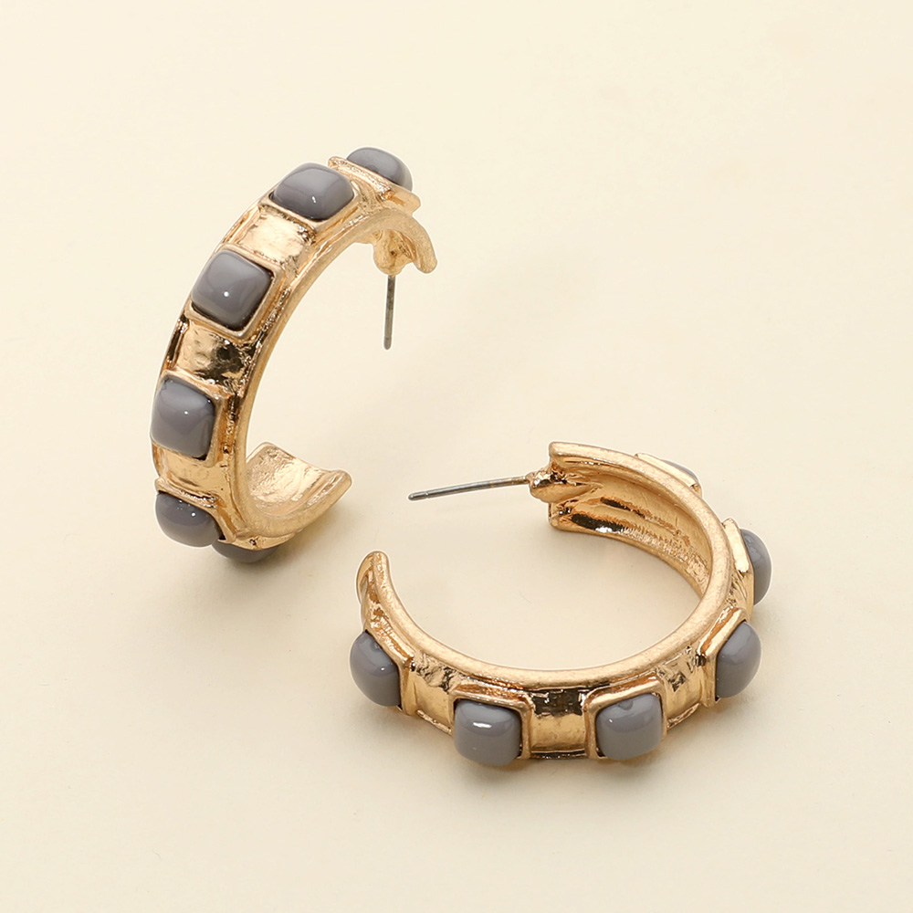 Chunky Stone Embellished Hoop Earrings Chunky Stone Embellished Hoop Earrings
