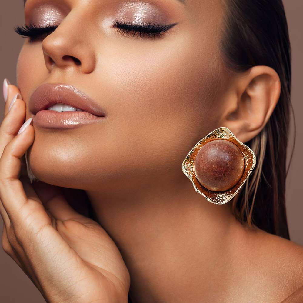 Details • Size : 2" X 2" • Post Back • Elevate your look with these bold sculptural stud earrings featuring a striking rounded center framed by an artistic, fluid silhouette. Their modern, gallery-inspired design adds dramatic elegance and standout charm, making them the perfect statement accessory for refined day or evening style. • Lead and Nickel Compliant