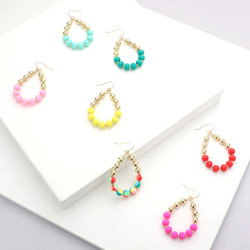 Details • Size : 1.3" X 2.2" • Fish Hook Back • Add bold charm to your look with these beaded hoop earrings featuring smooth matte beads paired with polished metallic accents. Lightweight and stylish, they’re perfect for everyday wear or special occasions, offering a versatile accessory that complements any outfit. • Lead and Nickel Compliant