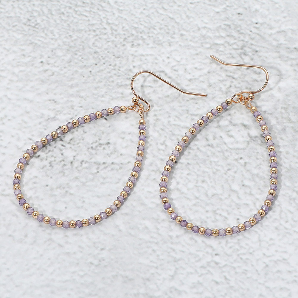 Colored CZ Beaded Open Teardrop Dangle Earrings