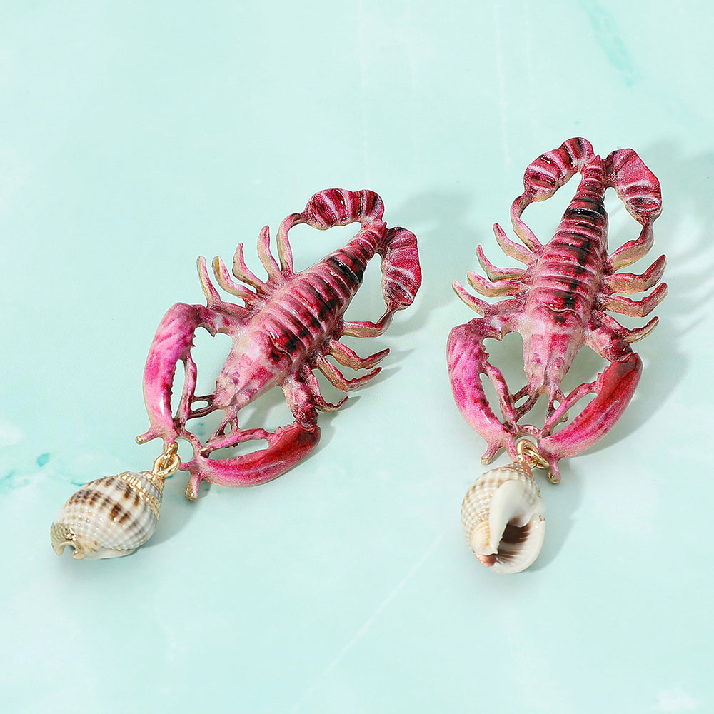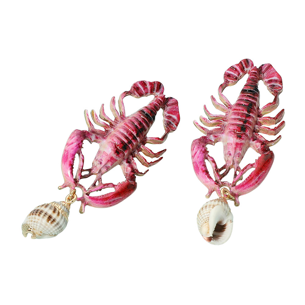 Details • Size : 1.2" X 2.8" • Post Back • Unique lobster dangle earrings featuring detailed crustacean design with dangling shell accents. Fun and bold accessory for beach lovers, summer festivals, or nautical-themed outfits. Lightweight statement earrings that bring playful coastal vibes and a whimsical ocean-inspired touch to your style. • Lead and Nickel Compliant