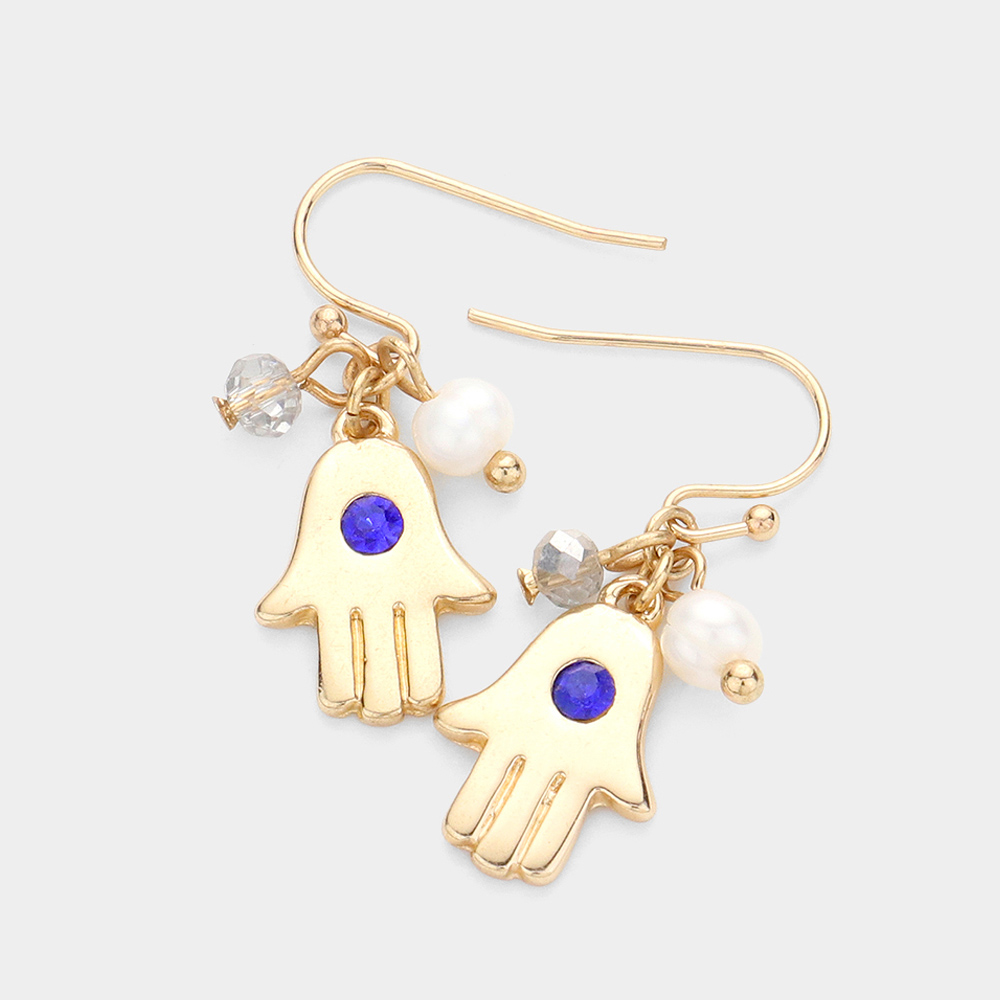 Crystal Accented Hamsa Hand Drop Earrings