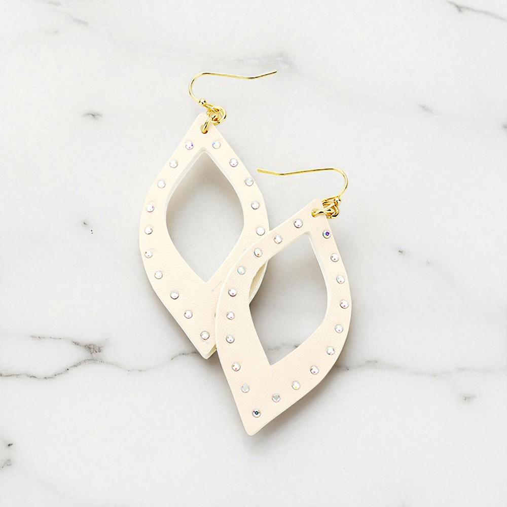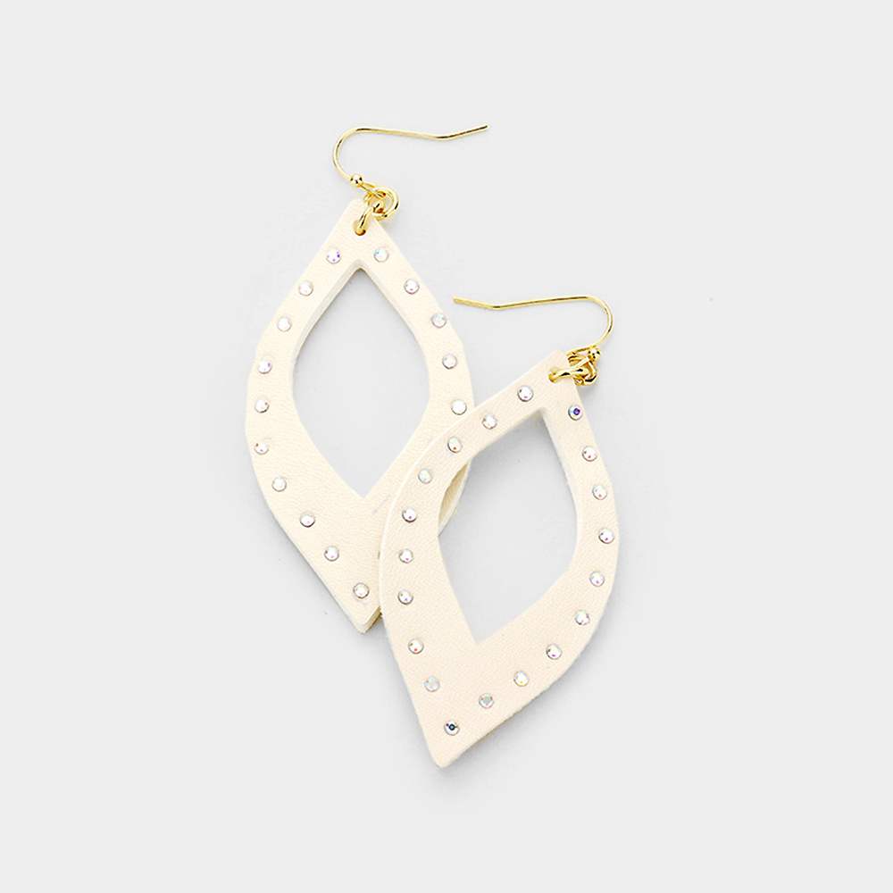 Crystal Embellished Cutout Leather Leaf Earrings