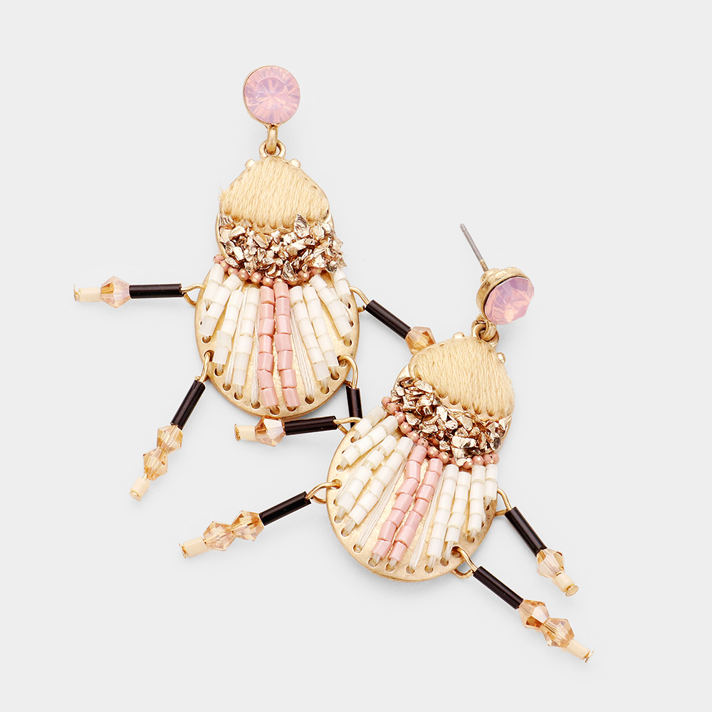 Wood Heishi Beaded Abalone Crescent Pendant Triple Layered Pendant Necklace