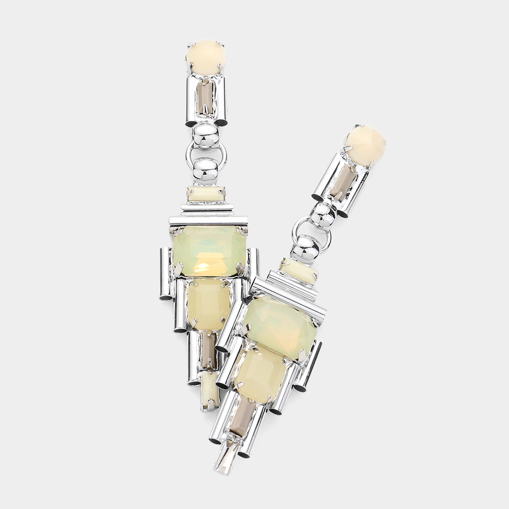 Square Teardrop Stone Accented Dangle Evening Clip on Earrings