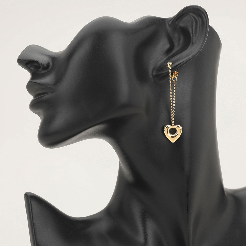 Details • Size : 0.5" X 2.1" • Post Back • Refined heart drop earrings with a delicate chained design that creates gentle movement and subtle sparkle. Perfect for adding romantic elegance to everyday outfits or enhancing evening looks, offering a lightweight, graceful accent that complements any jewelry collection beautifully. • Lead and Nickel Compliant