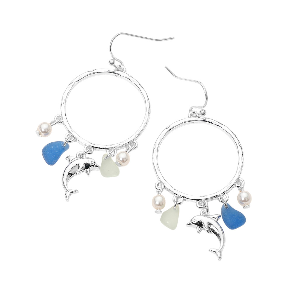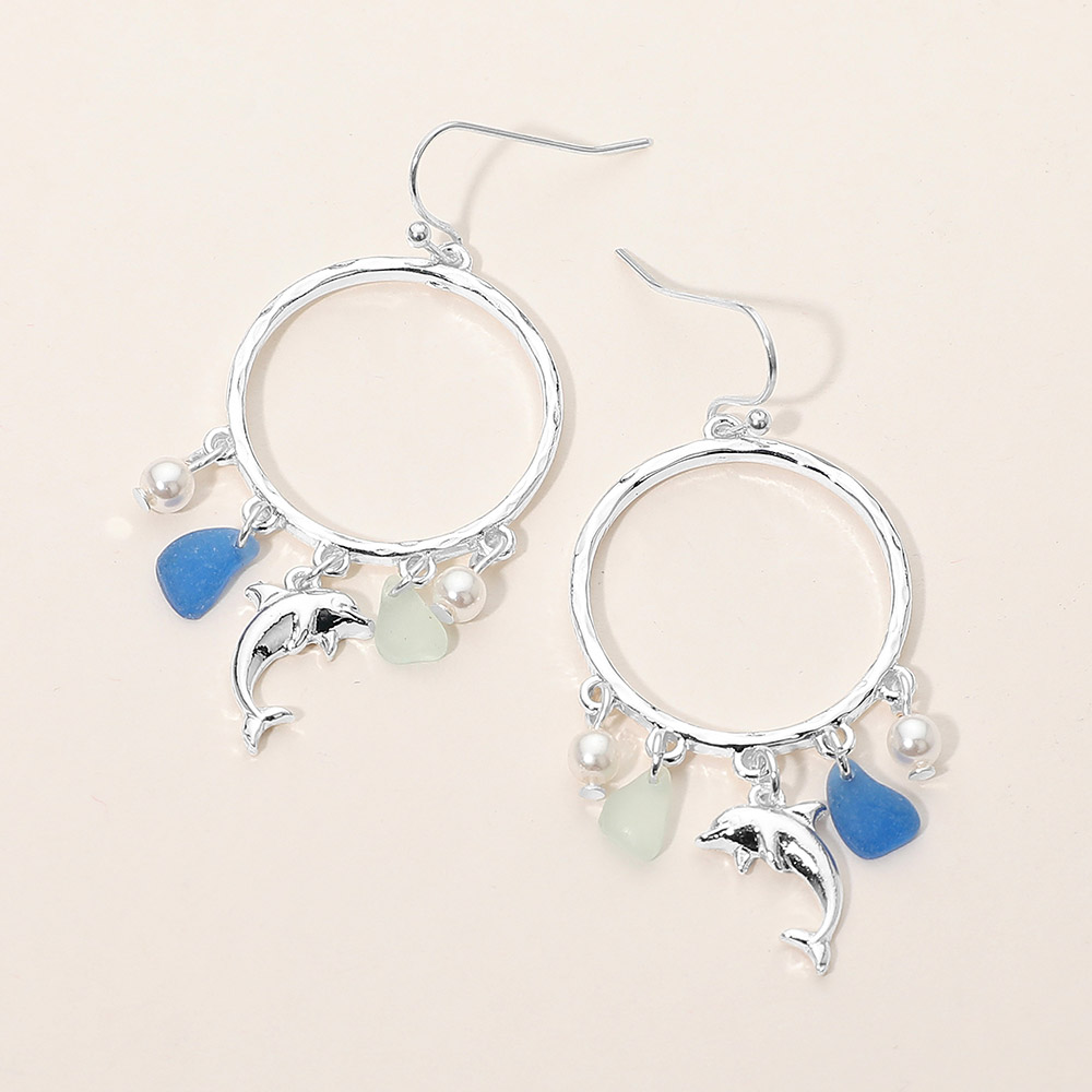 Details • Size : 1" X 2.2" • Fish Hook Back • Playful hoop drop earrings featuring a dangling dolphin charm with bead accents for a breezy, coastal-inspired look. Designed to add movement and personality to everyday outfits, vacations, and seasonal displays. A lightweight statement style ideal for beach, resort, and summer-focused boutique collections. • Lead and Nickel Compliant