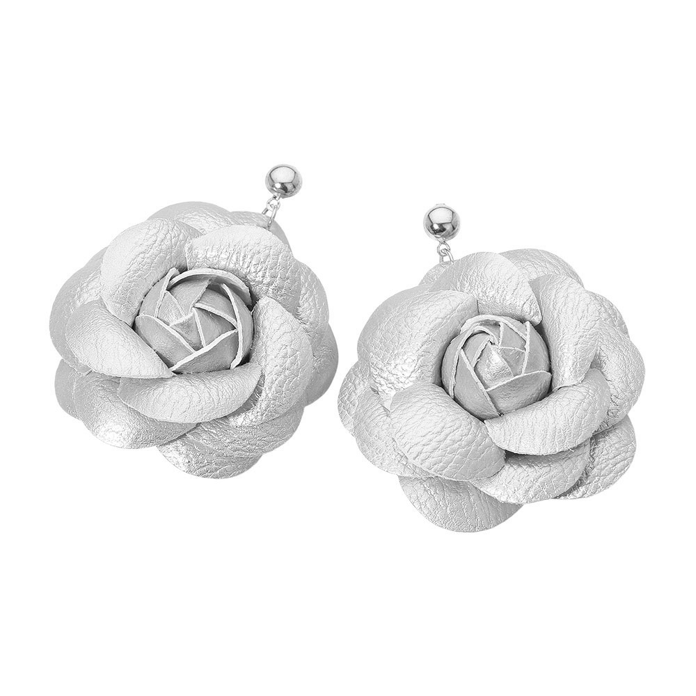 Elegant Faux Leather Rose Bloom Drop Dangle Earrings