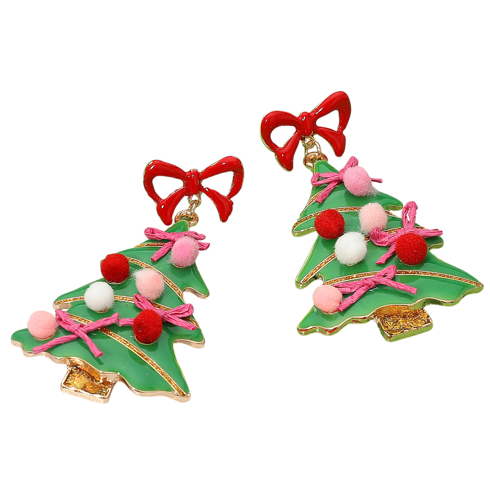 Enamel Bow Pom Pom Christmas Tree Dangle Earrings Enamel Bow Pom Pom Christmas Tree Dangle Earrings Enamel Bow Pom Pom Christmas Tree Dangle Earrings