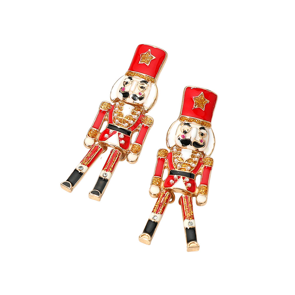 • Festive nutcracker drop earrings featuring a playful holiday character design to bring charm to seasonal outfits. Perfect for themed parties, gifting, or parade looks, these earrings add a cheerful touch and make a standout accessory for holiday fashion.