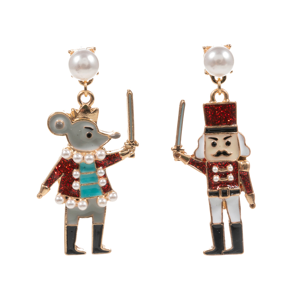 Enamel Nutcracker Mouse King Dangle Earrings