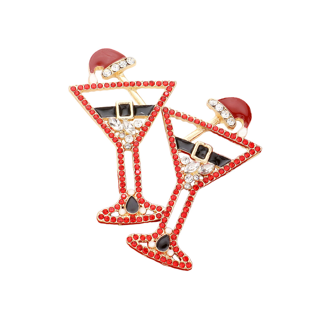Details • Size : 1.25" X 2.1" • Post Back • Celebrate in style with these festive martini glass dangle earrings adorned with sparkling details and playful accents. Designed for parties and holiday gatherings, this unique pair adds a fun, statement-making touch that captures attention and completes any bold outfit. • Lead and Nickel Compliant