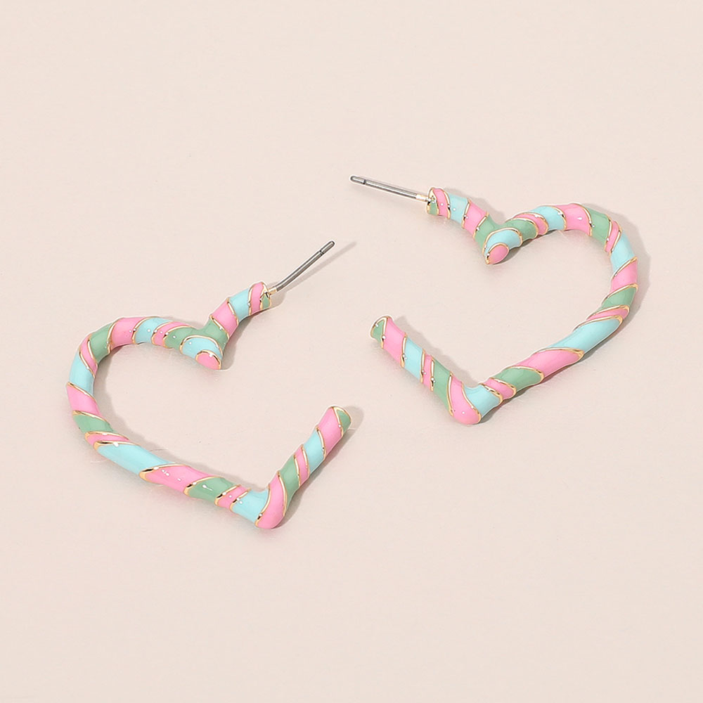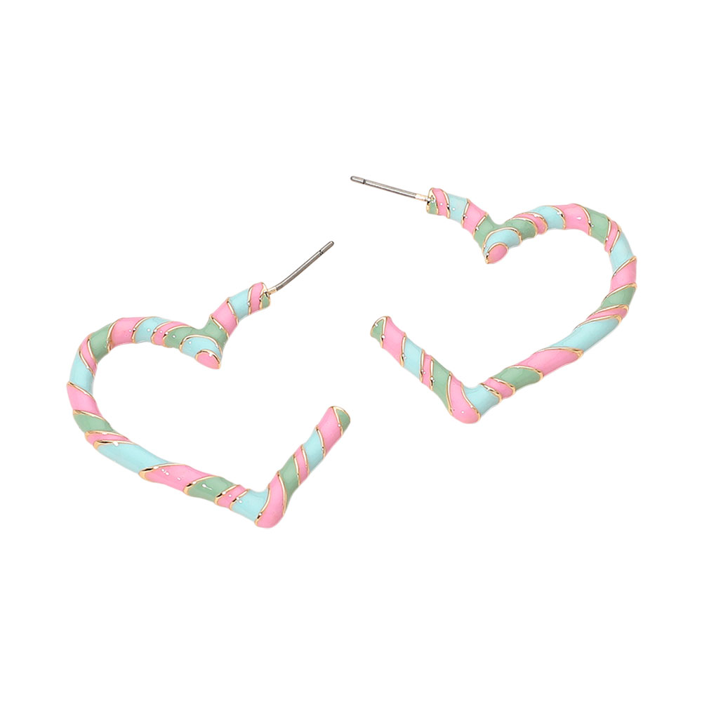 Enamel Twisted Candy Cane Open Heart Hoop Earrings