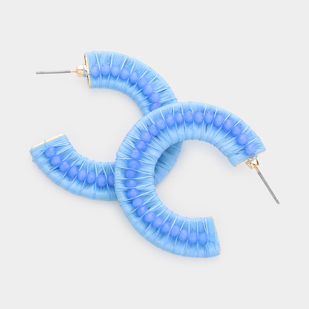 Faceted Bead Embellished Raffia Wrapped Hoop Earrings