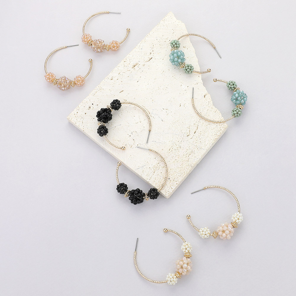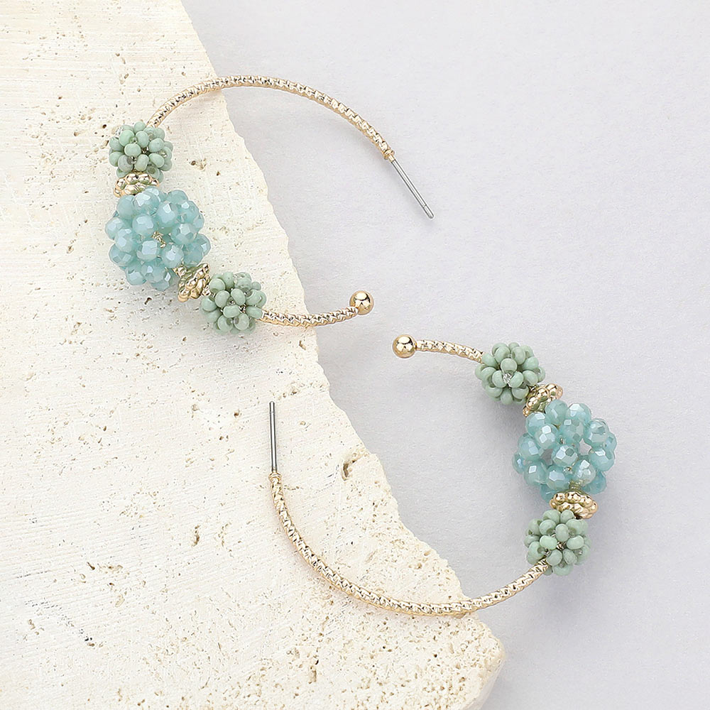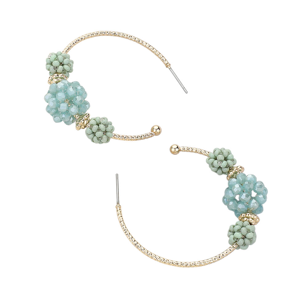 Faceted Beaded Flower Cluster Accented Hoop Earrings