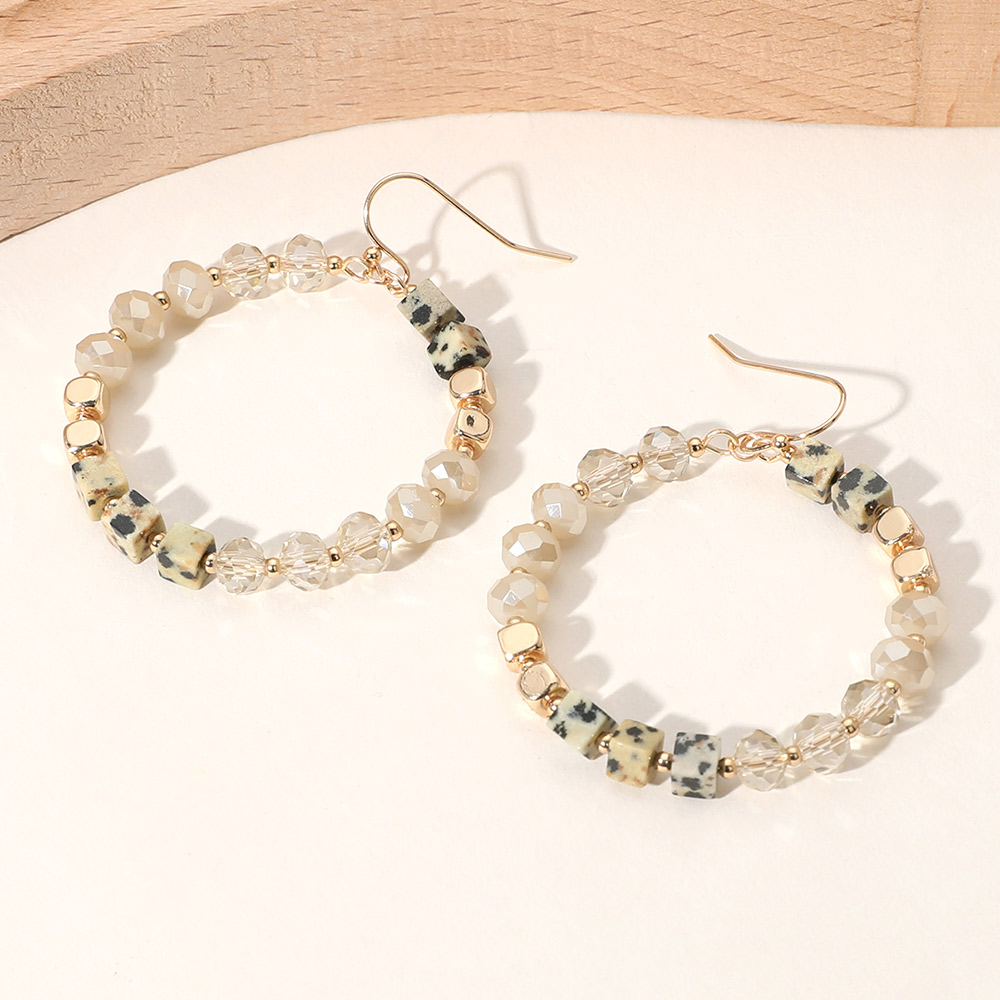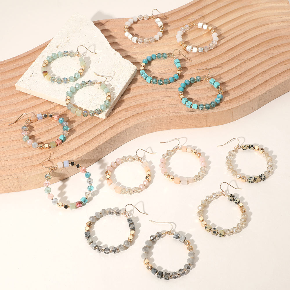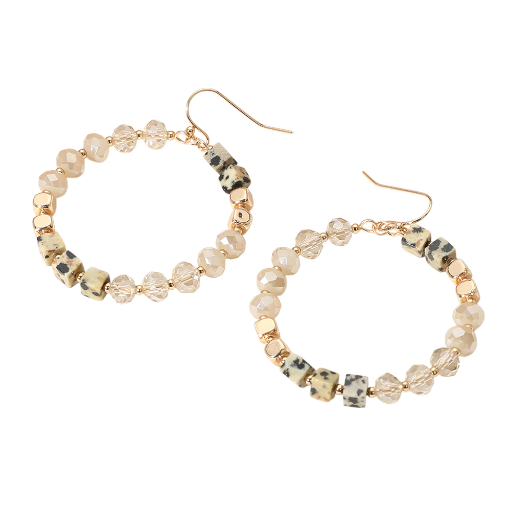 Details • Size : 1.75" X 2.1" • Fish Hook Back • Chic hoop earrings featuring a mix of faceted beads and metallic accents. Lightweight and trendy, perfect for adding a touch of boho charm and everyday elegance to your jewelry collection. • Lead and Nickel Compliant