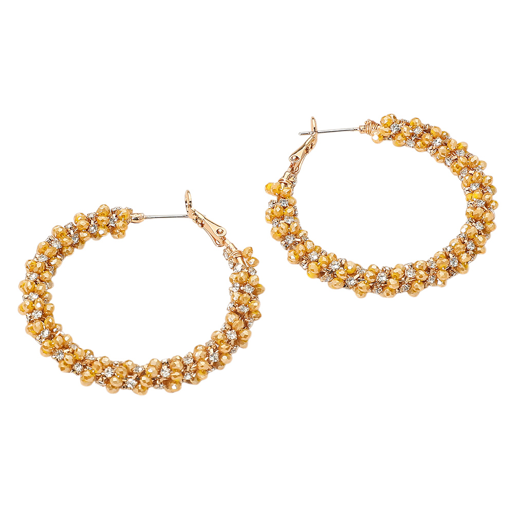 Details • Size : 1.75" L • Omega Back • Elevate your style with these beaded hoop earrings featuring shimmering accents. Bold yet lightweight, they bring sparkle and charm to any look, perfect for parties, date nights, or everyday wear with a touch of glamour. • Lead and Nickel Compliant