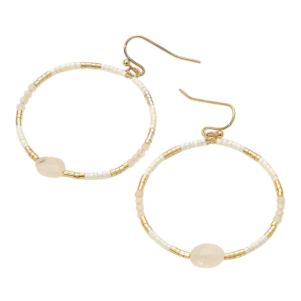 Faceted Oval Bead Accent Heishi Beaded Open Ring Dangle Earrings Faceted Oval Bead Accent Heishi Beaded Open Ring Dangle Earrings