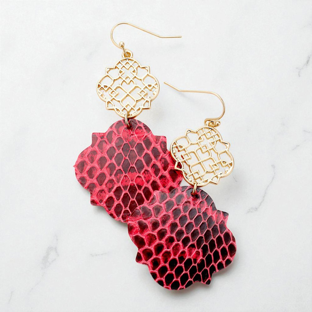 Stone Pointed Metal Cutout Triple Butterfly Link Dropdown Earrings