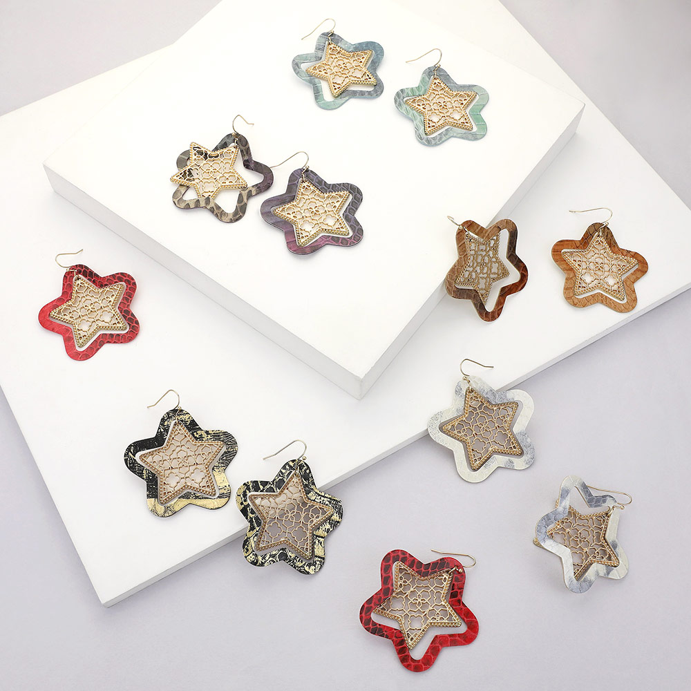Faux Leather Moroccan Filigree Star Dangle Earrings Faux Leather Moroccan Filigree Star Dangle Earrings Faux Leather Moroccan Filigree Star Dangle Earrings