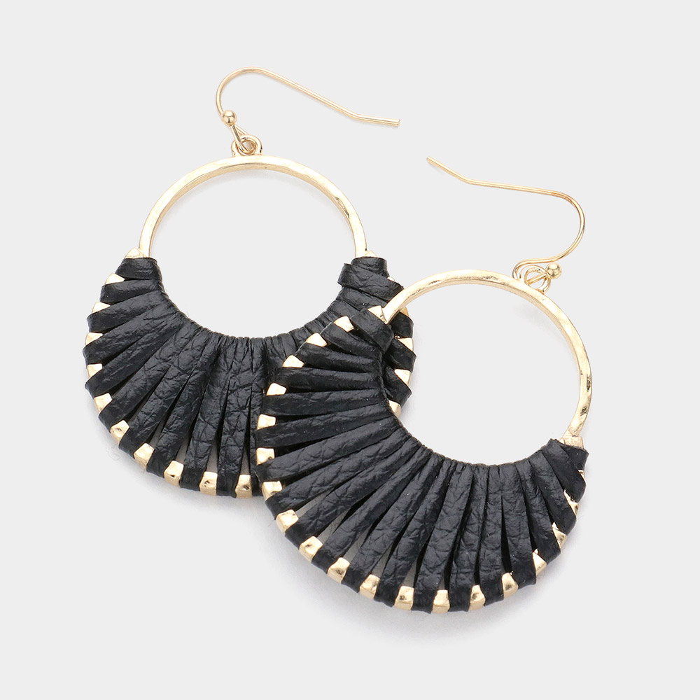 Faux Leather Wrapped Crescent Dangle Earrings