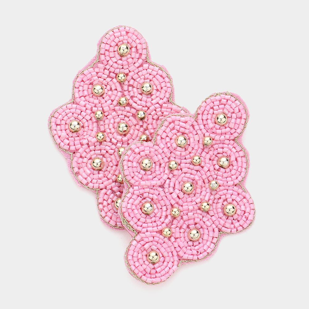 Teardrop Natural Stone Studded Woven Wood Square Link Dangle Earrings