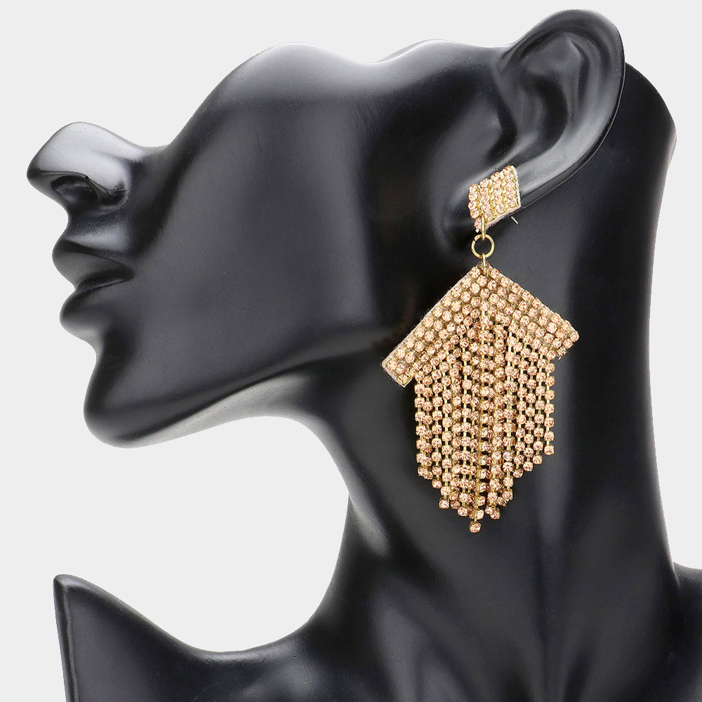 6Rows Crystal Rhinestone Fringe Evening Earrings