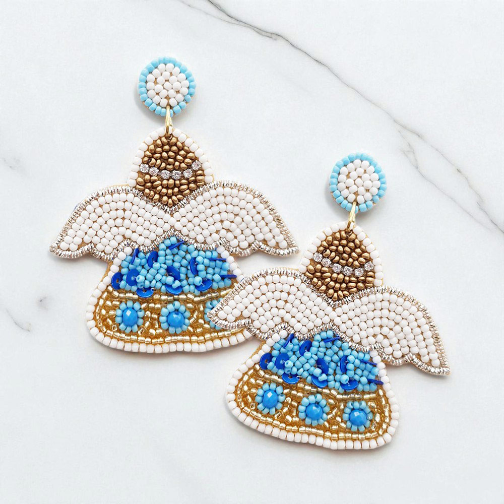 No.1 Teacher Message Enamel Apple Pointed Angel Wings Dangle Earrings