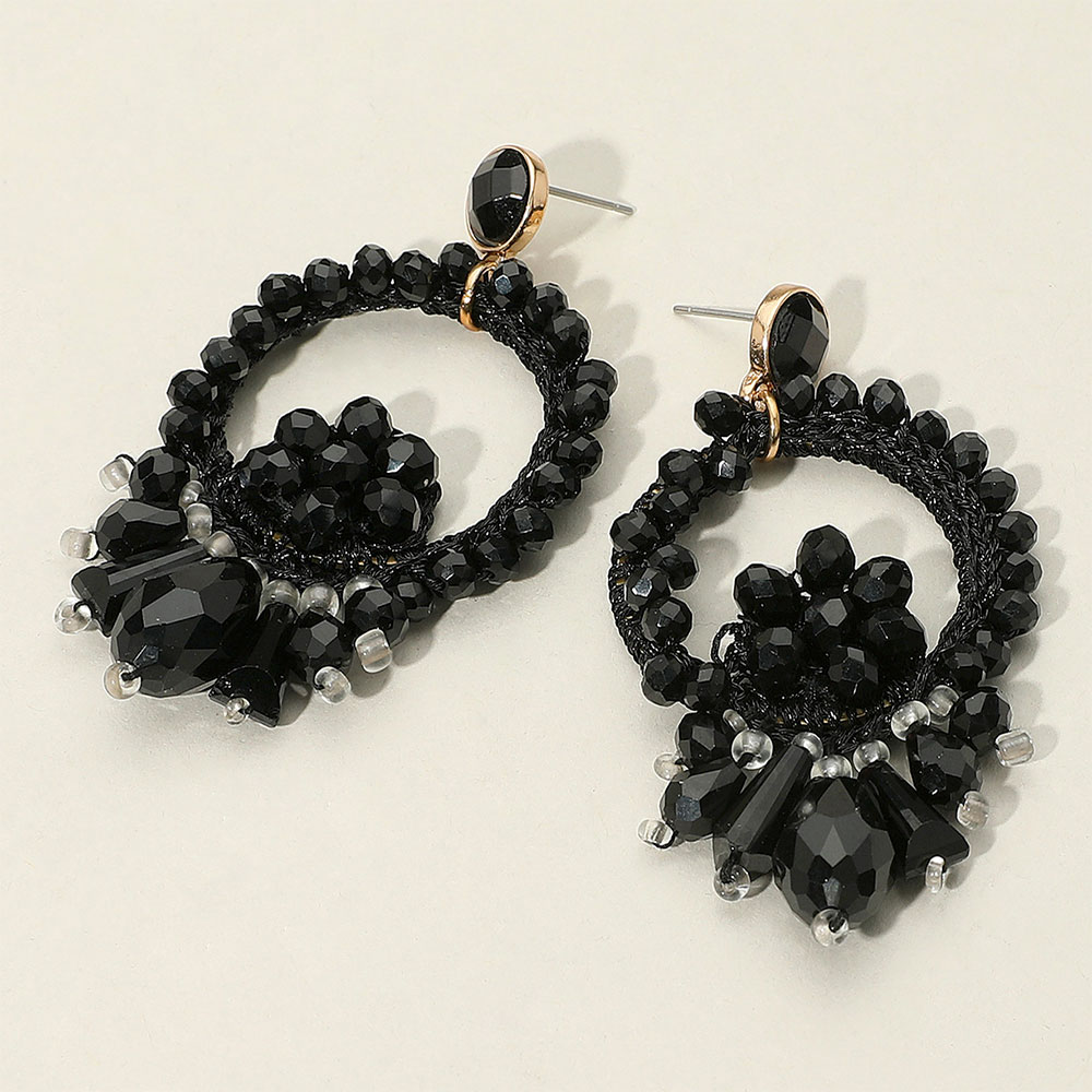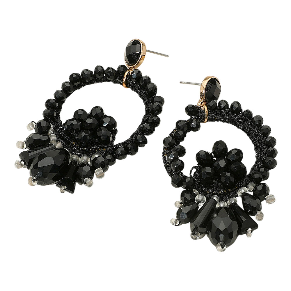 Details • Size : 1.5" X 2.5" • Post Back • Elevate your look with beaded hoop drop earrings featuring faceted accents and intricate detailing. Bold yet elegant, these statement earrings bring texture, shine, and modern flair, making them perfect for parties, evenings out, or standout everyday wear.