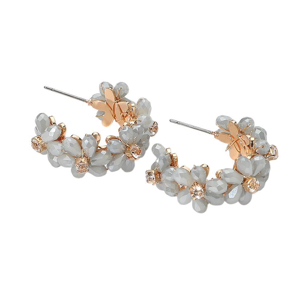 Details • Size : 1.2" X 1.2" X 0.5" • Post Back • Add elegance to your look with these floral beaded hoop earrings, featuring clustered beads in a chic design. Perfect for parties, weddings, or casual wear, these earrings make a stylish statement and a versatile accessory that pairs beautifully with any outfit. A must-have for jewelry lovers. • Lead and Nickel Compliant