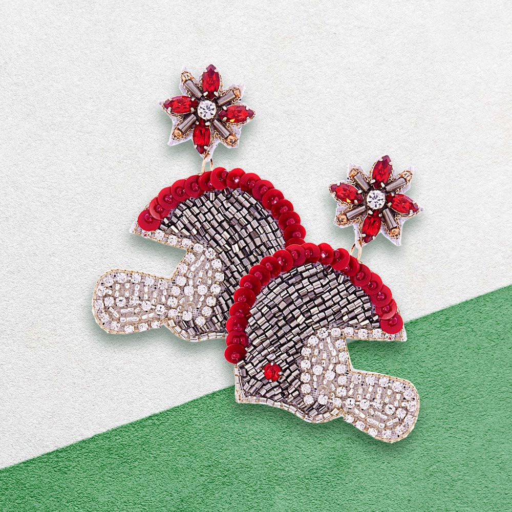 Game Day Felt Back Stone Beaded Football Helmet Dangle Earrings