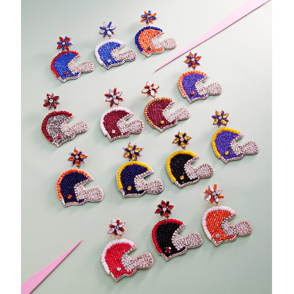 Game Day Felt Back Stone Beaded Football Helmet Dangle Earrings