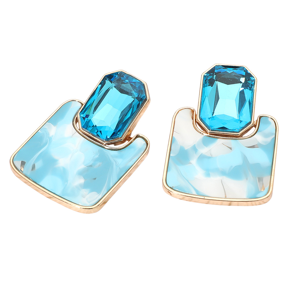 Geometric Stone Accent Printed Resin Plate Drop Earrings Geometric Stone Accent Printed Resin Plate Drop Earrings