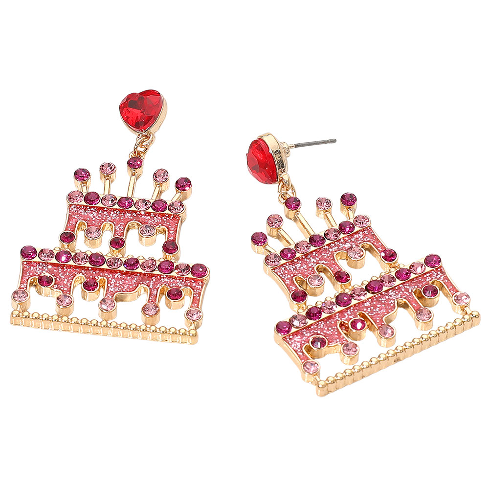 Glitter Enamel Birthday Cake Drop Dangle Earrings