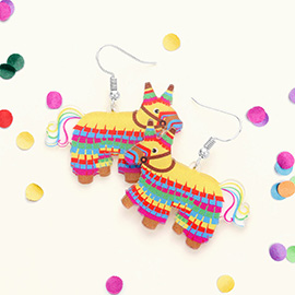 Glitter Leopard Double Hexagon Bead Link Earrings