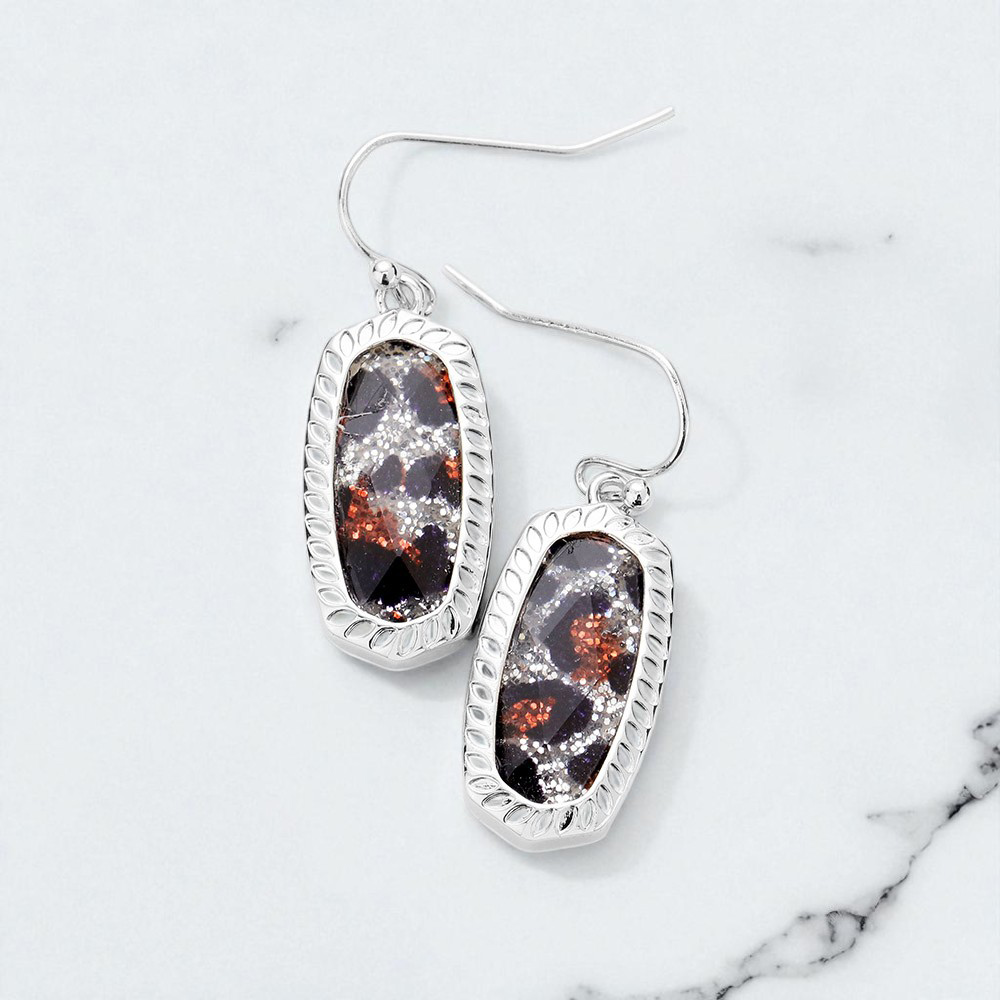 Glitter Leopard Hexagon Stone Dangle Earrings