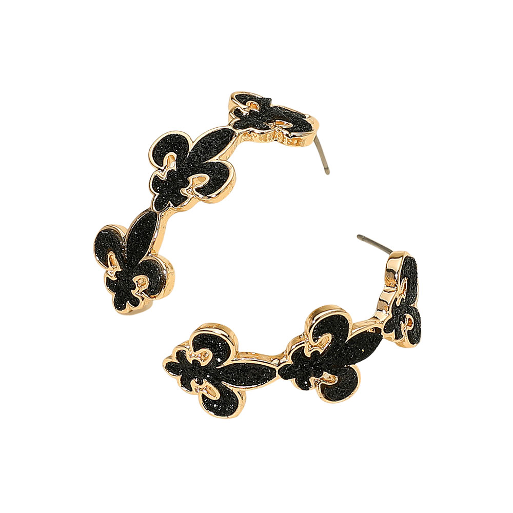 Glitter Mardi Gras Fleur de Lis Link Hoop Earrings