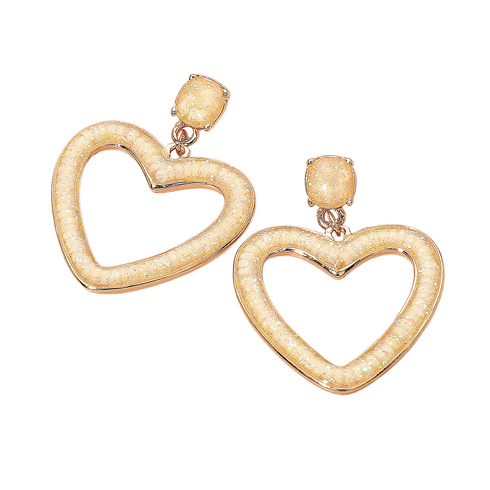 Glitter Open Heart Dangle Earrings