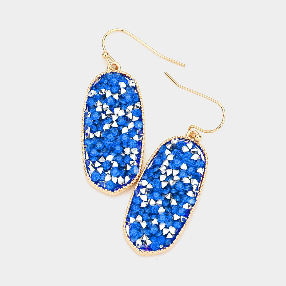 Glitter Stone Oval Dangle Earrings
