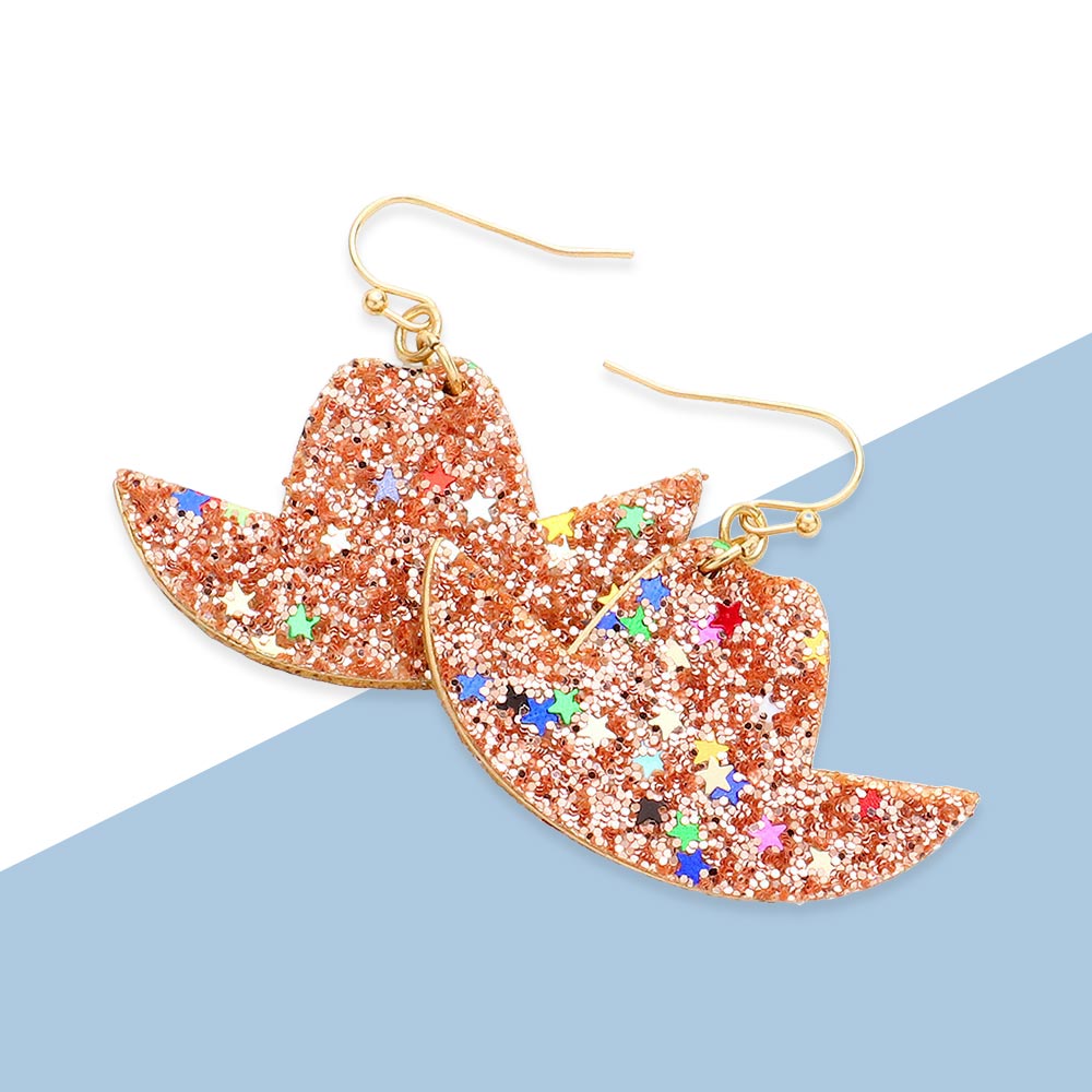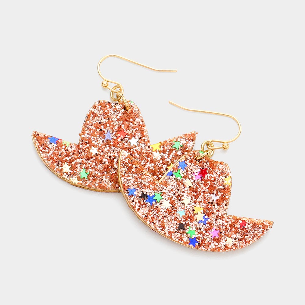 Glittered Cowboy Hat Dangle Earrings