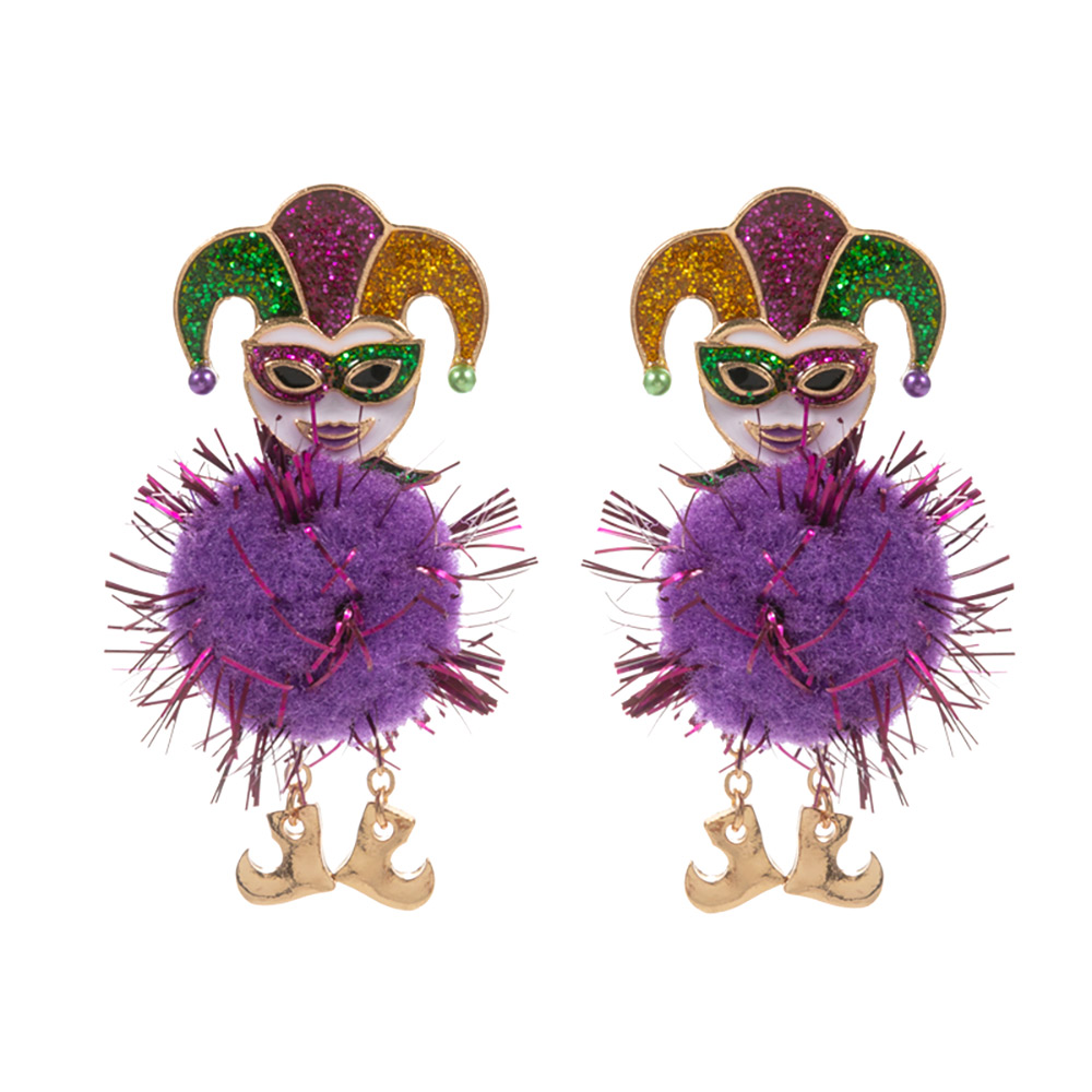 Glittered Enamel Mardi Gras Jester Pom Pointed Earrings
