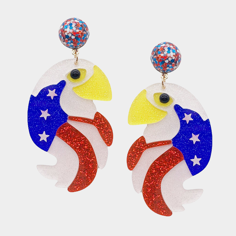 Glittered Resin American USA Flag Eagle Dangle Earrings